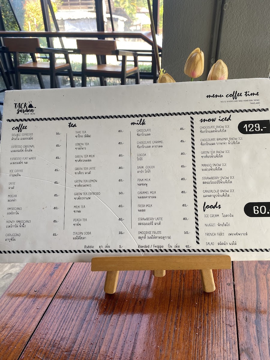 Welcome to ร้าน Tack Garden, a charming café nestled in the heart of Khun Yuam, Mae Hong Son. This delightful spot is known for its warm and inviting ambiance, perfect for any time of day. The menu offers a variety of beverages, with highlights including their aromatic iced tea and rich, creamy Thai tea, both of which have garnered rave reviews from customers seeking refreshment on their travels.